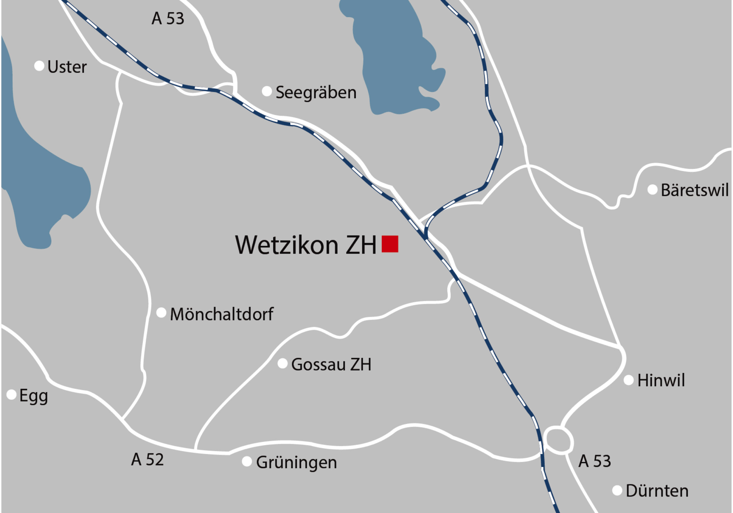 Die naturnahe und malerische Umgebung des Zürcher Oberlandes spricht genauso für den Standort Wetzikon wie die hervorragenden Erschliessung durch den öffentlichen und privaten Verkehr. So ist z.B. die Wirtschaftsmetropole Zürich mit der S-Bahn lediglich zwei Stationen entfernt oder mit dem Auto in 20 Minuten zu erreichen – wie übrigens auch der Flughafen.